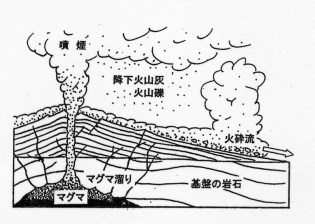 後期白亜紀の火成活動による岩石