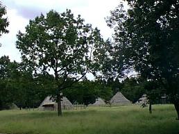 加曾利南貝塚東部に復元された竪穴式住居群です。 一般の人々は、平安時代の半ばまで竪穴式住居に住みました。 住居の絵が描かれた弥生式土器が発掘されています。弥生時代住居遺跡と、縄文時代住居遺跡の柱穴を比較して、縄文時代の住居を想像して復元住居が作られています。 |