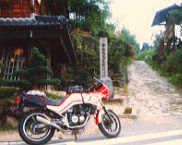 | 1983年式 1985年7月〜11月 走行距離 約6000キロ 中古で購入(約27万円) 初めて買った中型バイク。VT全盛の当時、あえて直4に惹かれてこれを買う。音は良かったがとにかく重くて走らなかった。 (写真) 長野・馬籠宿にて |