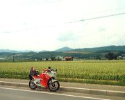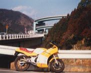 | 1987年式 1987年5月〜1988年5月 走行距離 約9000キロ 新車で購入 当時話題になった「片持ちサス」。私にとっては初めての新車、初めての400であった。V4ならではの分厚いトルクが何よりの魅力。反面、高回転ののびはイマイチ。 (写真上) 自宅前にて |