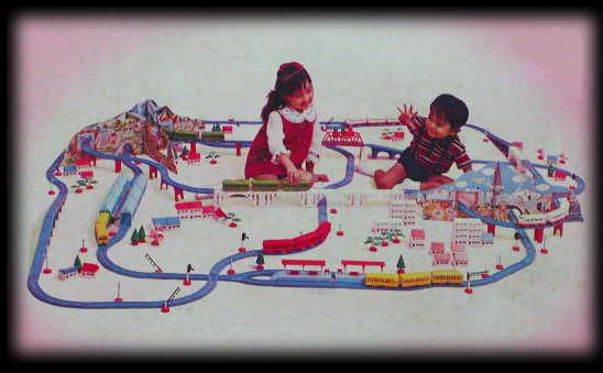 超特急ひかり号、そして赤・黄・緑のプラ電動電車、ブロックハウス、パノラマトンネル…