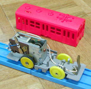 そして、もう一つ、このセットに入っているプラ電動電車は、屋根スイッチで動力直結、金属カプラーという