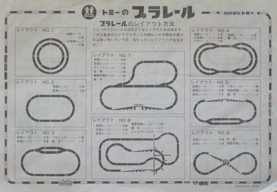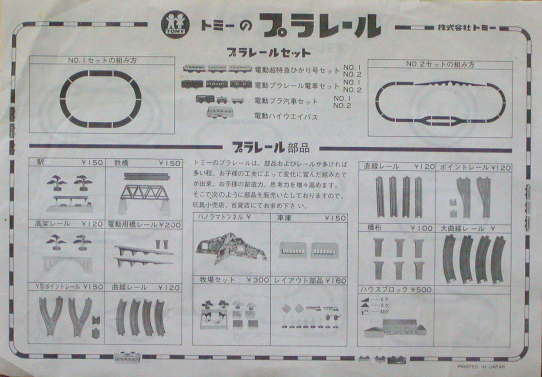 初期のプラレールセットと単品売りのレールや情景部品が紹介されている