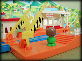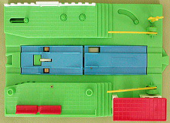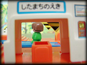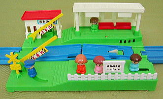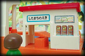 「まちのえき」は、実は「ふみきりえき」を金型改修し、人形の動くギミックを追加したものだったんだ!