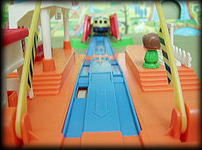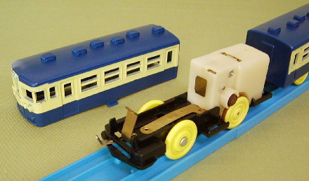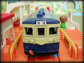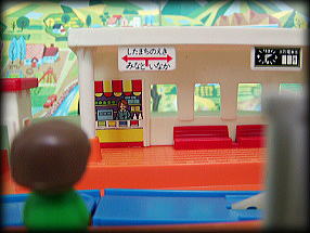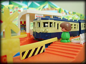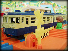 | ふいに現われた車掌が オレに話しかけてきた 「この電車は、1976年に一度だけ走った 幻のプラレール”近郊型でんしゃ”です。 それ以来ずっと子供達に忘れられたまま ずっと眠りについていました… 今日は27年ぶりにその電車が走る日」 |