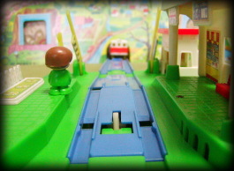 | 「まちのえき」にようこそ! プラレールファミリーたちが出迎えてくれる アナウンスがかかる 「この電車は、ここで終点です どなたさまも、こちらでお降り下さい」 |
