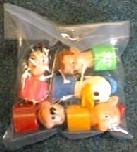 ミッキー、ドナルド、ピーターパン、白雪姫、こぶたの5体入り。