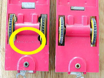 | 2代目の生産の途中で、ピニオンギアを摩擦ゴムに改良したものが登場(左) |