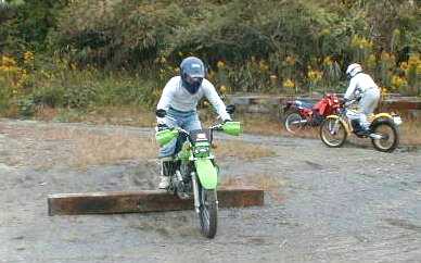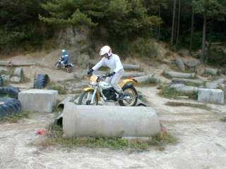 お昼からは、上部のトライアルセクションに行って清水副代表のお手本を見学。その後、腕に自信のある隊員がチャレンジしていました。トライアルはバランス感覚を磨くのに非常に良い訓練になります。しかし、トレールバイクでやるのとトライアルバイクでやるのとはかなり異なりトライアルバイクでやると自分がちょっと上手くなった感じがします。これが自分の乗っているバイクで出来るようになれば大したものです。