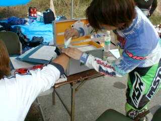 | 本部席で休憩中 | 擦り傷治療中(看護婦??ぺぺ) |
