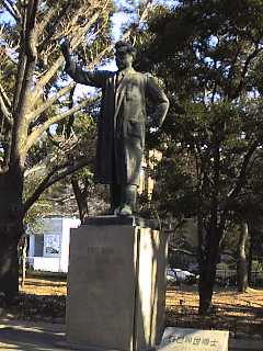 多いなかで 奈良朝時代に功のあった和気清麻呂像は特に異彩を放っているからです。 この銅像は紀元二千六百年記念として戦時色が強まりつつあった背景の中で 陸軍大臣 の働きかけで昭和15年(私の生まれる前年)に建ったものです。 敗戦後 軍国主義排除 ということで多くの銅像が撤去されたにもかかわらず この銅像が残されたのは GHQ マッカーサー司令長官による皇室対策の延長であったのではないでしょうか。 皇位につこうとした道鏡の野望を 宇佐八幡宮の神託により退け 天皇家の正統な皇位 継承を存続させた清麻呂の功績は良く知られいます。 生涯独身だった女帝 (孝謙) 称徳天皇の寵愛を受けた道鏡が皇族以外ついたことのなかった皇位を望み 「道鏡を 天位につけたら天下はよく治まる」 という宇佐八幡宮の託宣(神のお告げ)があったと朝廷 に奏上し これが真実であるかどうかを確かめるために和気清麻呂が派遣されました。 和気清麻呂が宇佐八幡宮から持ち帰り奉告した神託は 「わが国は開闢以来君臣定まりぬ。 臣をもって君となすこといまだこれあらざるなり。 天つ 日嗣(ひつぎ)は必ず皇緒を立てよ。 無道の人はよろしくはやく掃ひ除くべし」 というもので皇統を守る結果となりました。 こうした問題が起きたのは 古代では政治と宗教が分離されていなかったからです。 奈良の都から遠い宇佐八幡宮(大分県宇佐市)の代わりに もっと近くにある伊勢神宮 (三重県伊勢市)から 何故 神託を貰わなかったのかと疑問を持たれる方が居られるかも 知れません。 朝廷からの崇敬は宇佐八幡宮 伊勢神宮のどちらも厚かったのですが 神託(託宣とも言います)を出すサービスは宇佐八幡宮にしかなかったのです。 宇佐八幡宮の神託をめぐる「道鏡事件」はロマンがあり私の好きな話です。 チョット脱線 しますが 江戸川柳でかなり有名なものに 「道鏡は座るとみっつ膝ができ」 というのが あり 私に Inferiority Complex を読むたびに感じさせる川柳です。 和気清麻呂や姉の広虫(孤児教育の創始者)などを祭った和気神社が岡山県和気町にあり ます。 和気清麻呂の生誕地に所在し 朝倉文夫作の銅像が神社の入り口に建っています。 私は平成12年2月 倉敷市に居る愚息を尋ねた後 山陽本線の和気駅で下車し和気神社 を訪れましたが極めて印象的でした。 東京三大銅像である 楠木正成 西郷隆盛 大村益次郎 の各銅像はベスト10当確で 外せません。 大村益次郎銅像は西欧の鋳造技術を取り入れた我が国の本格的な 記念銅像第一号です。 西郷隆盛が入るなら勝海舟を入れざるを得ません。 (ところで 楠正成 楠木正成 何れが正しいのか私自身混乱していて良く分かりません。 皇居前広場にある銅像案内 には楠正成となっていますが ほとんどの参考書では楠木正成です。 インターネットの検索エンジンでは何れも出て きますが 楠木正成の方が多いです。 私はこのページでは楠木正成としました。 家系図で遠縁にあたる方から 楠木正成が正しいというメールをいただきました。 「日本の苗字七千傑」という苗字についてのサイトがあり 出身地の 観点から判断すると やはり 「楠木」が正しいようだというメールを 他の方からいただきました。 同じ方から 楠木正成の家紋の「菊水」と皇室の紋章である16弁の「菊」はベースが同じというご指摘がありました) 「七重八重花は咲けども山吹の実の(蓑)ひとつだになきぞかなしき」と小娘に笑われた 太田道灌は江戸城を築いたゆかりの人物として また都庁のシンボルとなっていた銅像 として入れました(注: 山吹の逸話は後世の作為で実際にあった話ではないそうです)。 ペリーの黒船に乗って米国に密航を企て失敗し安政の大獄で29歳の若さで江戸の獄中で 処刑された吉田松陰 福島県猪苗代湖畔の農家に生まれ世界の医学会で細菌学者として 知られている野口英世 赤穂四十七士の墓が祀られ参詣者が絶えない泉岳寺の大石内蔵助 もベスト10に入れてオカシクないと思います。 渋谷駅の忠犬ハチ公も除けません。 東京の銅像ベスト10に何を入れるか 色々な考え方があると思いますが こうしてみて みると 私が選んだベスト10の銅像は 結構 常識的で妥当なのではないでしょうか。 番外の 自由の女神は フランスから訪問していた銅像で お台場の海浜公園に平成11年 5月9日まで展示されました。 ニューヨークにある自由の女神よりサイズはかなり小さい ですが さすが本場の銅像だけあって出来が良いと思いました。 ベスト10の順位は 偶然の一致なのですが年代順と同じとなりました。 年功序列を信奉 する私としては この並べ方は日本の美徳として誰からも文句がでないものではないかと 思っています。 東京の銅像ベスト10の内容と順位について ご意見や異なるお考えなど ありましたら 是非メールでご連絡ください。 必要なら内容を改めるつもりです。 デジタルカメラで撮った銅像の写真と簡単な個別説明は以下です。