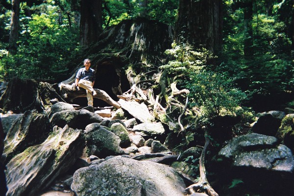 ところを知りません。 樹齢7200年とも言われる縄文杉は 写真より実物の方が見る人を圧倒する 神々しい存在です。 縄文杉を日帰りで見る為に 私は 朝4時に起床 5時に旅館を車で出発し 6時半に登山口(荒川口)に到着 休息を入れ登山に往復10時間かけ 旅館に戻ったのは午後6時 でした。 全体として2泊3日の旅程を必要とし 本格的な(雨天覚悟の)登山なので 足腰と体力に 自信がない人には薦められません。 江戸時代には 平木に加工するのに真っすぐな屋久杉を選んで切り 瘤だらけで凹凸が激しい縄文杉 の如き屋久杉は 使いものにならないので 切らずに残されました。 現在見ることができる巨木の 屋久杉は 従い 利用に不適として切り残された異形が多く 特に樹齢の高い長老級のものには 敬意の念を込めて 個々に 縄文杉 紀元杉 大王杉 夫婦杉 三代杉 翁杉 弥生杉といった 固有名詞が付けられています。 縄文杉は 現在知られている屋久杉の中で 最古で最も太いもの です。 縄文杉は 昭和41年5月 町役場の観光課長だった岩川貞次氏により発見されました。 岩川氏は 子供の頃から 13人で一抱えするような大きな屋久杉があると 古老から聞かされており その伝説 の杉を探し当てたものですが マスコミにより大々的に取り上げられ 屋久島観光ブームが起きる きっかけとなりました。 この巨杉は 瘤だらけの岩のような形から「大岩杉」と当初 名付けられまし たが 樹齢からマスコミ報道で「縄文杉」と呼ばれるようになったそうです。 縄文杉の発見は 屋久島観光ブームを起こしただけでなく 日本各地の自然保護団体が屋久島にも 目を向けるきっかけとなりました。