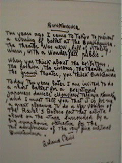オーチャードホール1Fロビーパネルより、「ローラン・プティからのメッセージ」