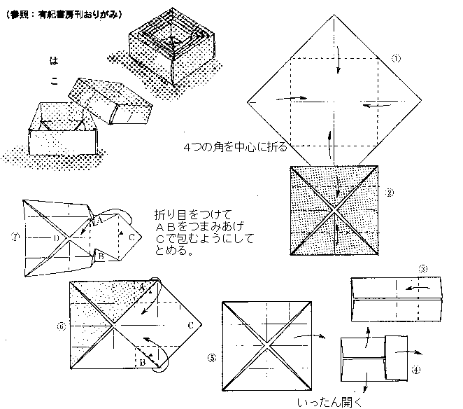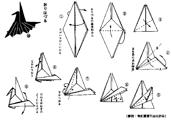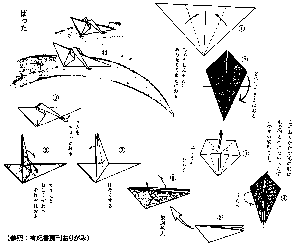 | 《かもめ・折り方》 | 《バッタ・折り方》 |
