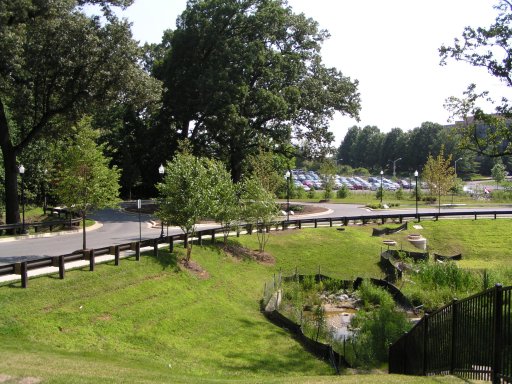 Communityの入り口を眺めています。窪地があったり、ちょっとした池があったりしてます。が、水溜りがあると言うことは、蚊が発生し易いということでもあり、よく考えると問題ですかね〜?
