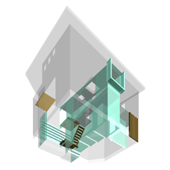 もうひとつの要素は、2〜2.5階に設けた三つの小さなポケッ