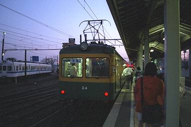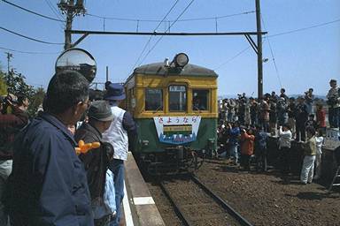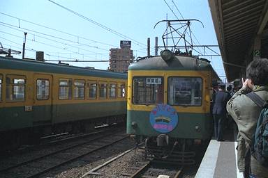 1999/04/04[日]は、新潟交通電車線の最後の日となりました。大概ならば年度末を以て営業を終了するところですが、訪問者の便を図って週末までの営業となったとのことです。