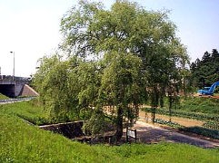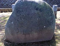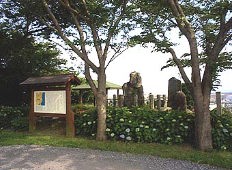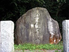 水戸市の青柳公民館裏の畑の中。「雨の世に舟を浮へて青柳の 木の間を渡る風の涼しさ」との和歌が残るが、現在は那珂川の堤防が高く視界がさえぎられ、風情もない。