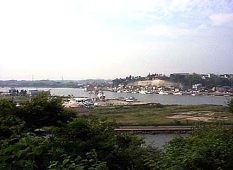 ひたちなか市の那珂湊総合支所(旧那珂湊市役所)の裏から、太平洋がキラキラ輝く。「雲のさかひしられぬ沖に真帆上て みなとのは方によするつり舟」と歌われ、釣りに出ていた船が夕日を受けて次々に帰港する様子は、美しい風趣だった。