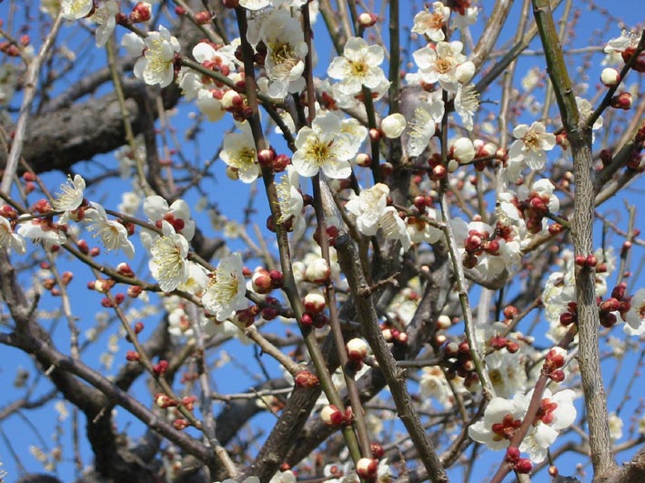 日当たりのいい南崖下は白梅が満開です。