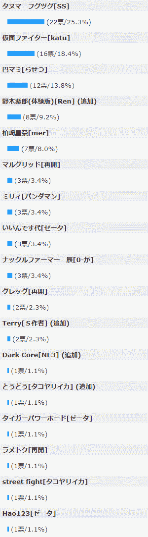 「じゃ、発表や。全87票中22票の支持を得た、第一位!