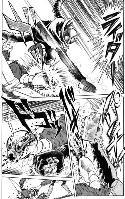 ・(島本和彦版仮面ライダーBlackのライダーパンチ!のコマ)