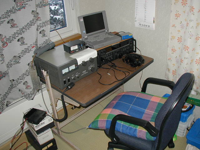 今回は、シングルバンドでの参加なので、準備は楽で交信相手もアメリカとカナダに限定される為、アンテナも45度 方向固定で大きな問題はなく、外から部屋に引き込むのは、同軸1本と電源線1本と結構楽でした。