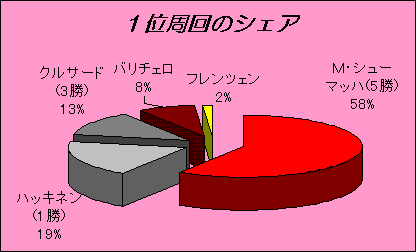| 1 | M・シューマッハ | FER | FER | 56 | 優勝 | 優勝 | 優勝 | 3位 | 5位 | 優勝 | R | 優勝 | R | 1 | 8 | 12 | 2 | 2 |