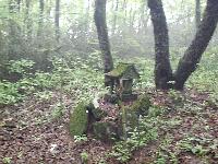 砦跡に奉られている祠(鬱蒼とした森の中に位置している )