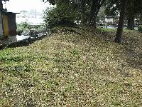 ほぼ正方形の屋敷跡の周囲には今も水路と、低くはなっているが土塁が巡っている。また、東側