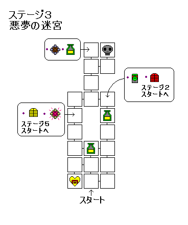 - ステージ2から赤の扉にワープしてきます。1UPを取り、下にあるスピードを