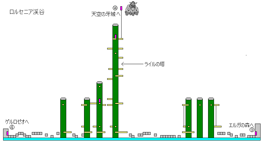 この地には「ライルの塔」と呼ばれる高い塔がある。この塔の高さは天空までそびえ、頂上からは獣王ライガーが住む、「天空の牙城」も見える。実はライルの塔の頂上でインドラの五神器のひとつ「ペガサスの笛」を使うと、天空の牙城への入り口が現れる。天空の牙城に入れるようになればゲームも終盤だ。
