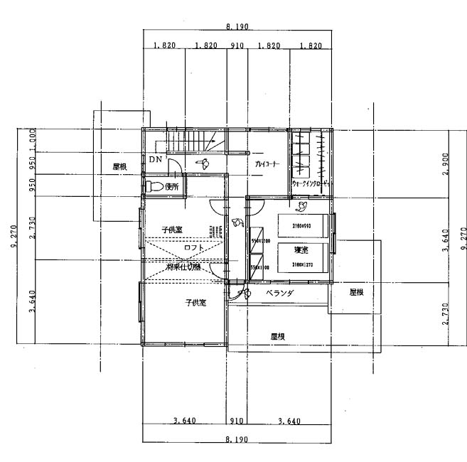 寝室はベットを置くと少し狭いので広くする事とした。タンスを置くスペースも確保出来る。