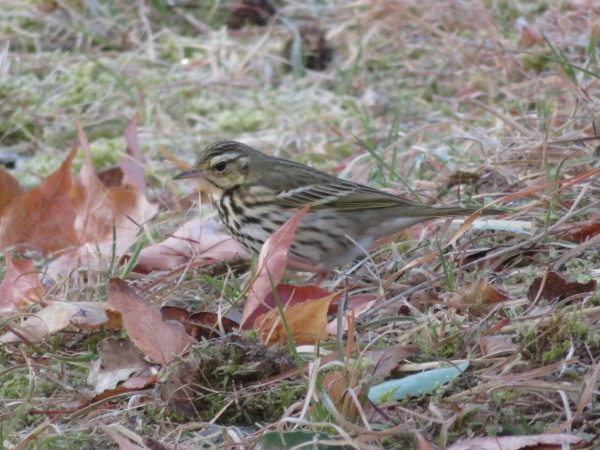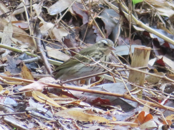 | 冬になると公園へやってきます。お腹の長細い斑点が目立ちます。竹やぶの 中にもぐり込んで、落ち葉の間のエサを食べていました。 |