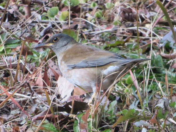 | 冬、落ち葉の積もったところでガサガサと音を立ててエサを探します。 |