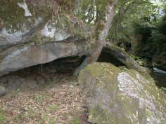 溶岩コブのすぐ上流には、二段滝が見られる。