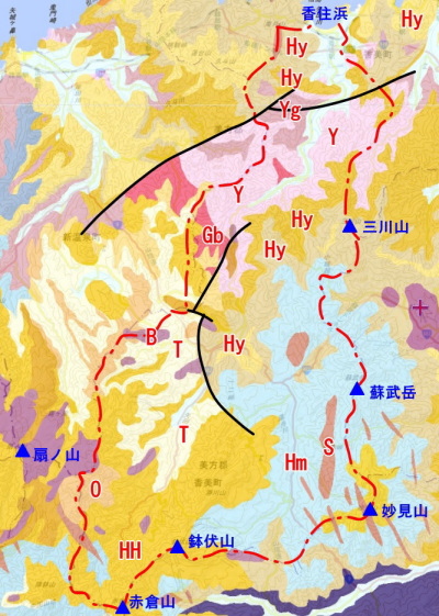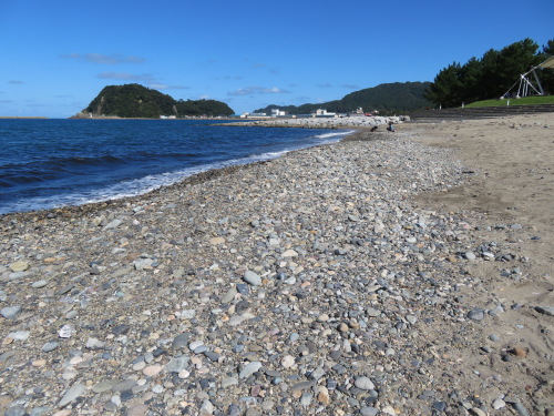 香住浜の色々な小石 (香美町) 青い空を映してさらに青い日本海。香住浜は、その日本海に面して砂浜が長く続いています。快晴の秋の一日、香住浜で小石を集めてみました。 香住浜には砂浜が広がっていますが、局所的に小石の集まったところがあります。そのようなところでは、波打ち際や汀線に沿ったところに小石が打ち上げられています。 香住浜の西で海へ注いでいるのが矢田川です。香住浜では、矢田川流域の多様な地質を反映して、さまざまな種類の火成岩・堆積岩・断層岩(変形岩)が見られました。 1.矢田川流域の地質 矢田川(やだがわ)は、赤倉山に源を発し、北へ流れ下って香住で日本海へ注いでいます。本川の河川延長は38Kmです。 流域には、後期白亜紀の矢田川層群やそれに関連する花崗岩、新第三紀中新世の北但層群、新第三紀鮮新世~第四紀更新世の照来層群や氷ノ山・鉢伏山火山岩類、更新世のアルカリ玄武岩や扇ノ山安山岩などが分布しています。 下に矢田川流域の地質図を示しました。文献によって地質区分や分布が異なっていることが多く、適切でないところがあるかもしれません。
