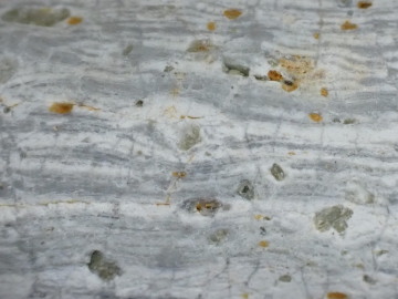 白色、灰色、黒色、淡オレンジ色などです。放散虫由来の微小な穴が観察できるものがあります。 チャートの地層は、矢田川流域にはありません。北但層群や照来層群には礫岩の地層がふくまれているので、これらのチャートは礫岩のチャート礫が洗い出されて流れてきたものと考えられます。