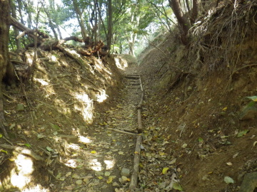 尾根の登山道は、深く掘りこまれて溝になっていた。道が二段になっているところがあった。