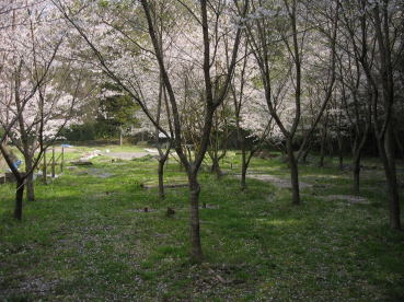 代官所跡を歩いてみた。当時の面影は一掃され、タチツボスミレやハクサンハタザオの咲く草地の上に、桜の花びらが散り敷いていた。