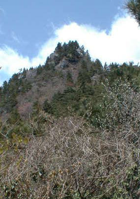 9時30分、生野学園に9名が集合。「えらいことになってしまいまして……」という島田さんを先頭に、林道を歩き始める。沢沿の林道は途中で崩れているので、その沢を北へ渡り、下から見えていた1つ目の岩塔をめざして登っていく。植林地の中の杣道は、消えかかっている。ちょっとしたやぶこぎもしながら、岩塔の下に出た。1つ目の岩塔は、見せてもらった高度計で725m。2つ目の岩塔は765m。そして、目の前に天狗岩がそびえ立つ。しだいに迫力を増す岩塔に、心踊らせて登っていった。天狗岩の上はまさに絶景。生まれ育った長谷の村が眼下に見える。