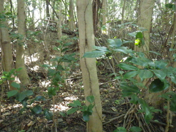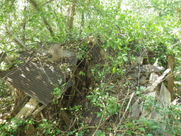 昔は、段々畑になっていたようで、高さ1、2mの崖が上へと続いている。ヤブの中、登れそうなところがなかなか見つからない。その崖を一つ一つ越えていくのが難しかった。