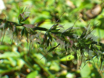 登山口の行基ヶ鼻で、この岩石の観察ができた。 流紋岩の岩片を多量に含んでいるのが、この地点の特徴である。流紋岩の岩片は、細長いものが多く、ほぼ一定の方向を向いて並んでいる。この岩片は周囲より硬いので、風化面では飛び出していてわかりやすい。 流紋岩の岩片の大きさは数cmのものが多いが、10cmを超えるものもある(最大23cm×8cm)。大きな岩片が集まっている部分は、凝灰角礫岩といえる。 軽石がレンズ上に伸びた溶結構造は明瞭である。また、大きさ数cmの頁岩の岩片を含んでいる。 石英と長石の結晶片をふくみ、石英は融食されているのがルーペで観察できる。 |