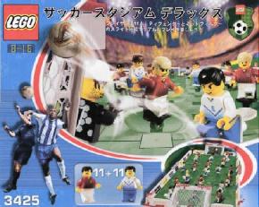 2002年、ワールドカップに湧いた日本でしたが、レゴの世界でも多くのサッカーのセットが発売になりました。2002年のレゴスポーツの目玉は、実際と同じくフルの11人対11人でゲームのできる「サッカースタジアム・デラックス」(3425)でした。このセットがアメリカでは自国のナショナルチーム(代表チーム)のセットとして登場しました。 |