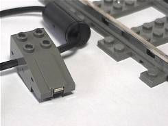 トレイン用パーツには、ほかにライト部品があります。9V ライト部品自体はトレイン以外のセットでも使われていますが、3点のユニットとなると、トレインに限られるようです。電力は、(モーターを通して)レールから供給します。 |