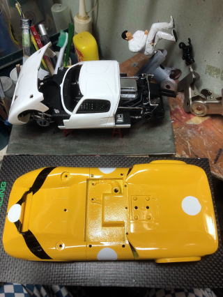 タミヤ製再販ボディーを全日本GP出場車瀧レーシングのローラに塗装デカール製作して塗装予定。フロントエアーダクト作成。リア排気ダクト開放、