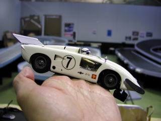 左写真 T氏のフォードJとGT40、 バックスタイル・・・ 素晴らしい、 右写真 T氏製作シャパラル2H フルスクラッチだそうです。 素晴らしい・・・