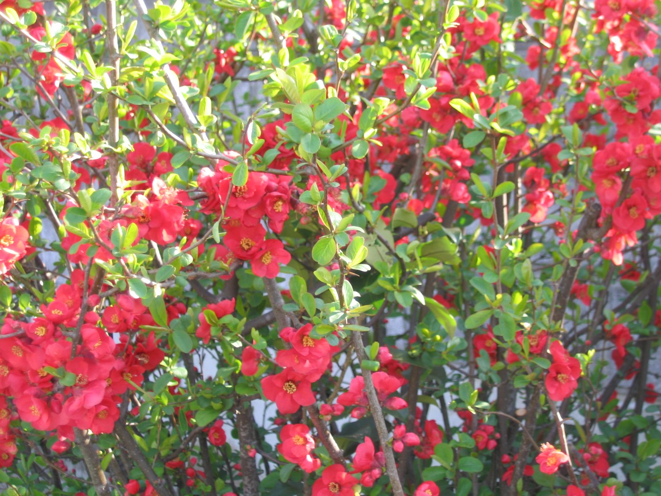 ボケ(木瓜)バラ科 深い赤が、春の温かさを 一足早く、 感じさせてくれますね。 . |