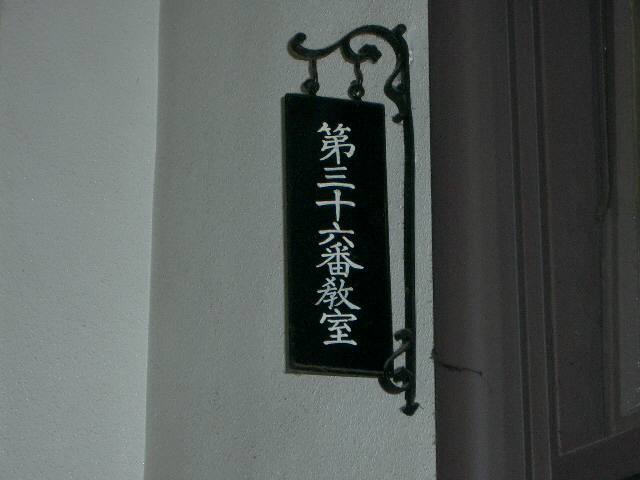 「中等部三年A組」と書かれた教室札のデザインも、「一橋大学」西本館教室のものがモデルとして使用されています。