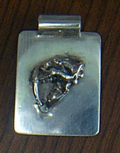 ペンダントはあまり使わないので,指輪を作ってみた.丸の頭骨を半分近く埋め込んでろう付けした.重くて使用感は悪い. (^^;)